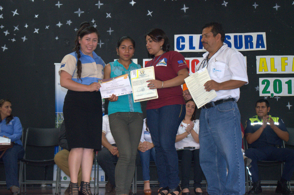Esquipulas, Guatemala, 16 de octubre del 2015. Por tercer año el Programa de Alfabetización para la Seguridad Alimentaria y Nutricional (AlfaSAN) promovió a 540 participantes, a los cuales se les entregó su constancia de aprobación por parte del Comité Nacional de Alfabetización (CONALFA) de Guatemala.