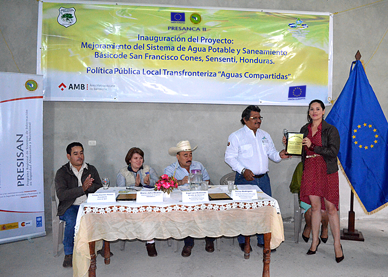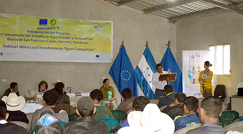 Sensenti, Ocotepeque, Honduras, Febrero 10 de 2016. Más de mil personas fueron beneficiadas este martes 09 con el “Mejoramiento del sistema de agua de la comunidad San Francisco Cones, Municipio de Sensenti, Honduras, con un monto total de L. 1’883,900.00 (US$ 90,300.00) proporcionados por la comunidad internacional, la alcaldía municipal y la comunidad beneficiada.