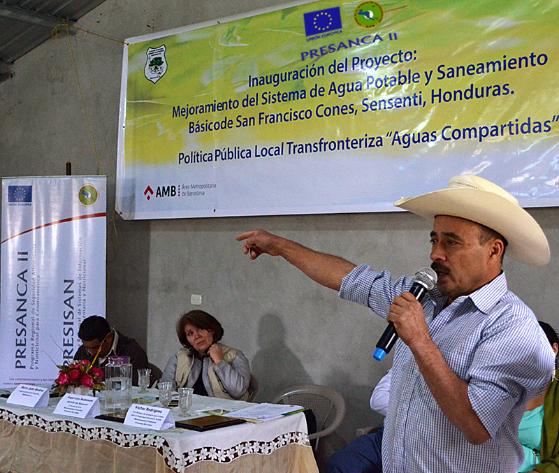 “Los que están aquí presentes, saben que este proyecto ha costado mucho, porque nadie quería ceder el acceso a sus terrenos para poder instalar las tuberías, pero gracias al apoyo económico de PRESANCA II, de AMB, la Unión Europea, la Alcaldía Municipal y al esfuerzo que ustedes, hemos logrado el objetivo, “agua limpia, vida sana para todos”, expresó Víctor Rodríguez, Coordinador de la Unidad de Planificación, Monitoreo y Evaluación de la MTFRL.