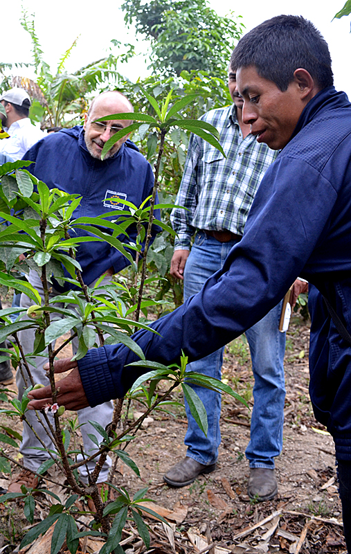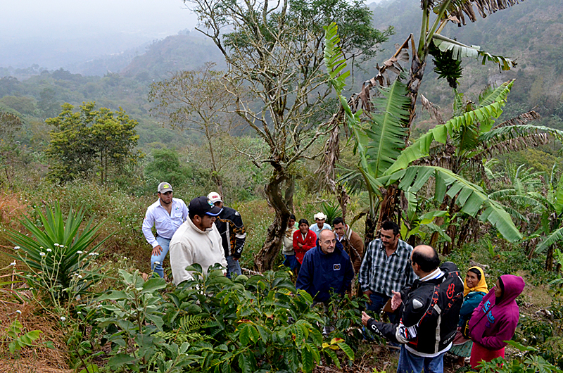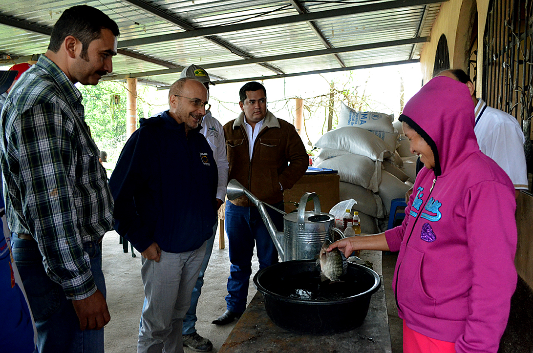 En esa línea, se trasladaron a aldea Las Palmas donde conoció los beneficios que el programa “Diversificación Productiva”, está realizando en fincas de las familias campesinas, al incorporar nuevos cultivos a los sistemas de producción tradicionales, es decir, la siembra combinada de árboles maderables, frutales, café, hortalizas; producción de aves criollas, estanques piscícolas, apícolas, etc; aplicando tecnologías agroecológicas con baja dependencia de insumos externos y promoviendo el uso eficiente de los recursos suelo, agua y bosque. Mejorando así, la calidad alimenticia, nutricional y económica de los grupos familiares.