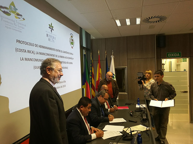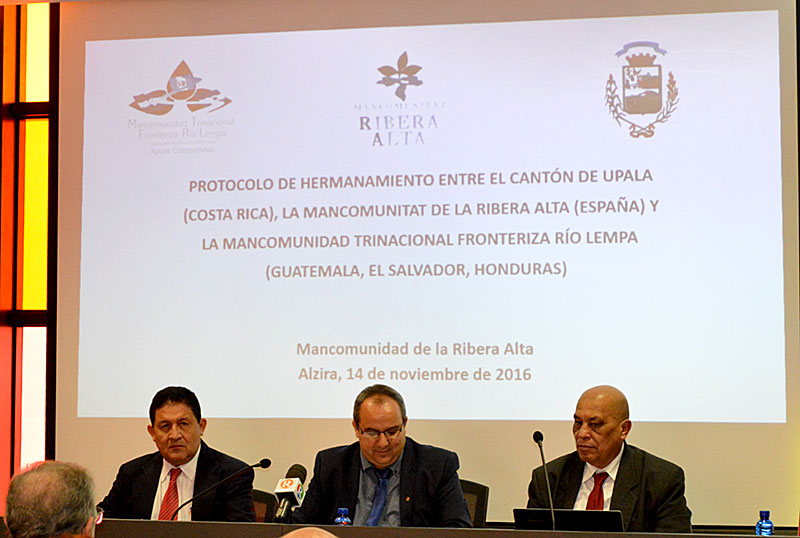 Valencia, España, 14 de Noviembre de 2016. La Mancomunidad Trinacional firmo hoy, un convenio de hermanamiento con la Mancomunidad de la Rivera Alta de Valencia, España y con el municipio Upala de Alajuela, Costa Rica, con el fin de fortalecer las capacidades institucionales de las entidades involucradas e implementación de políticas locales sectoriales en cada una de las regiones de España y Centroamérica.