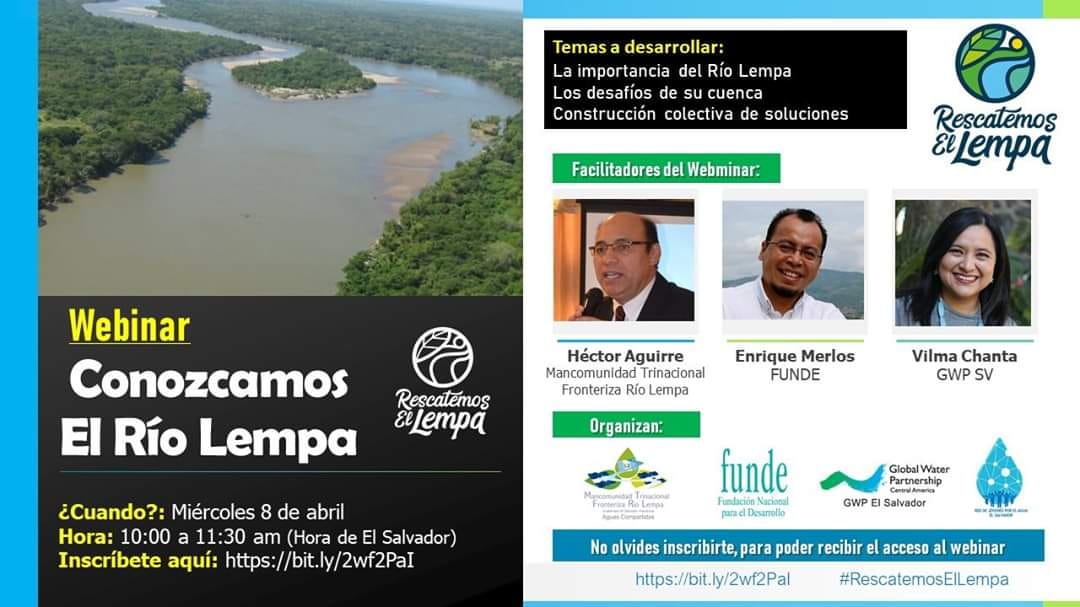 La Mancomunidad Trinacional Fronteriza Río Lempa, como parte de la Red Trinacional por el Rescate del Río Lempa, hace una atenta invitación para que nos acompañen a ser parte de un Webinar, para conocer un poco más sobre el río Lempa, su importancia en el territorio centroamericano, los desafíos de su cuenca y la búsqueda de soluciones para recuperarle. #RescatemosElLempa