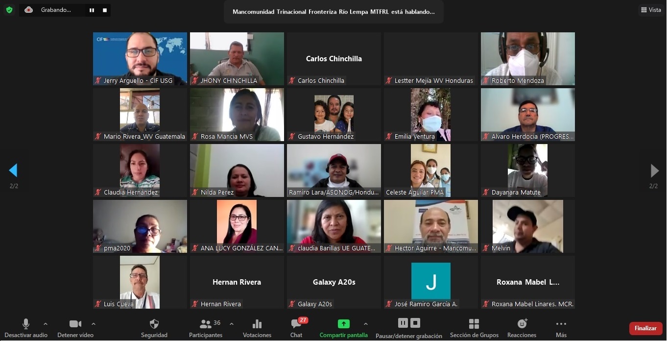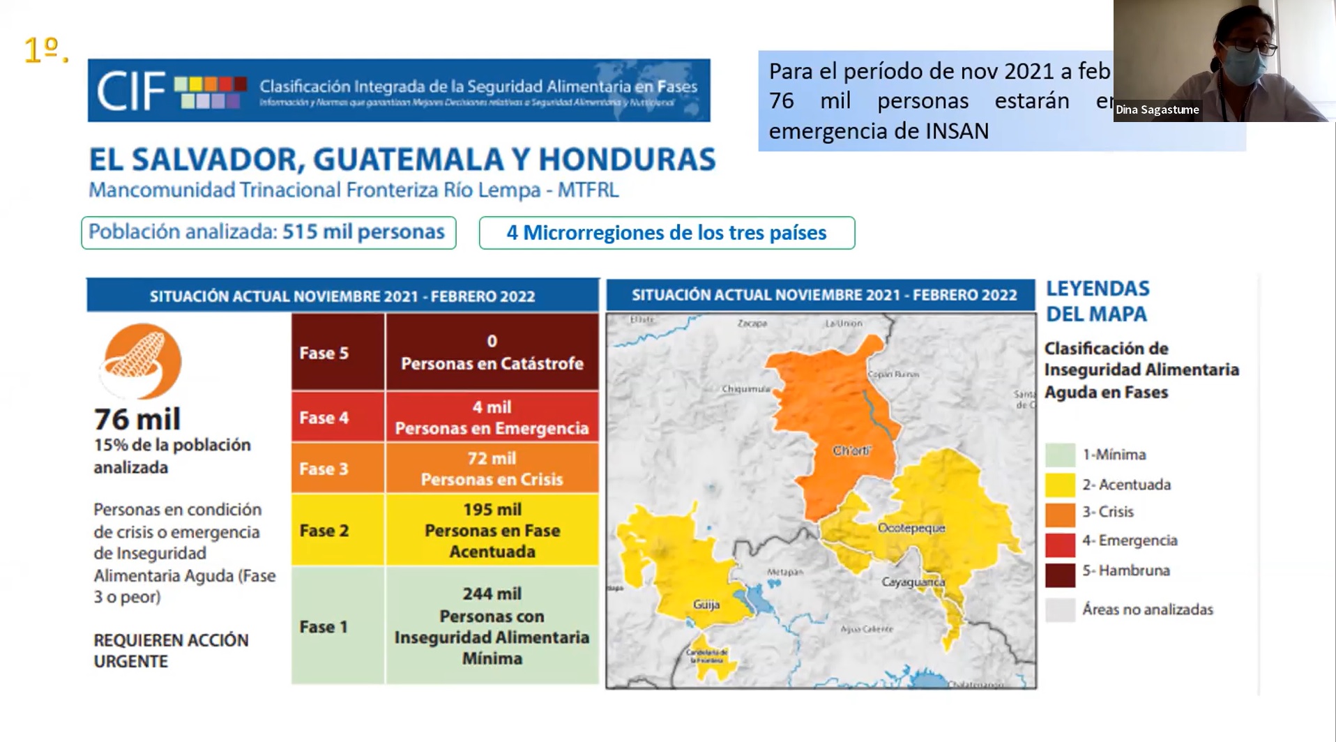 La Mancomunidad Trinacional, realizó la presentación de resultados de la CIF, mediante la plataforma ZOOM, ante los Directores de las entidades rectoras de la SAN: Sres. Licda. Lizett Marie Guzmán Juárez, Secretaria Ejecutiva SESAN – Guatemala; Licda. Yanira Calderón, Directora Ejecutiva CONASAN – El Salvador; e Ing. Jose Lino Pacheco, Director de UTSAN, así como ante los representantes y funcionarios de instituciones públicas, ONG´s, cooperantes, entre otros, presentes en la región; así mismo, se presentaron los resultados del Estudio de la Resiliencia realizado en el territorio a cargo del PROGRESAN-SICA. Los resultados muestran que de manera recurrente la región enfrenta situaciones de crisis y emergencia alimentaria, con mayor impacto en la Microrregión Ch’orti’, Guatemala.