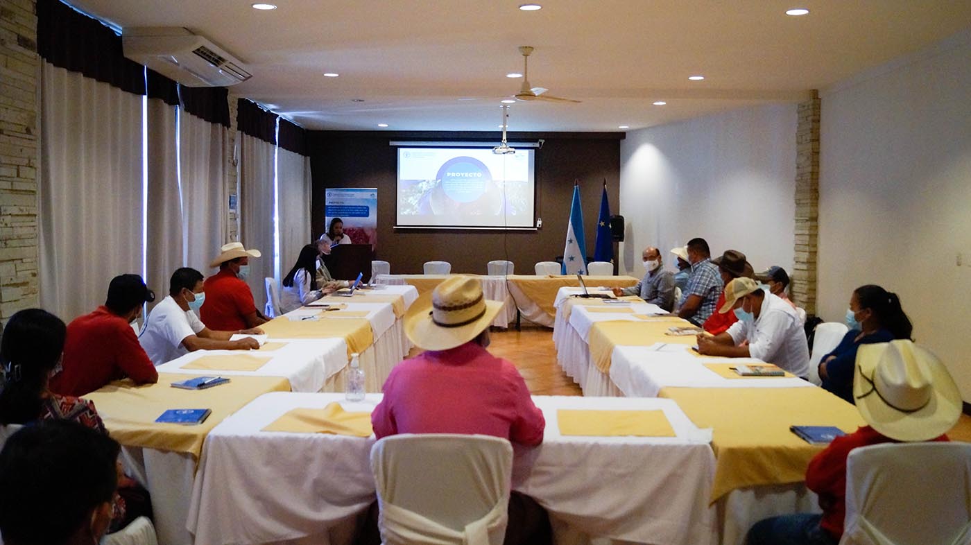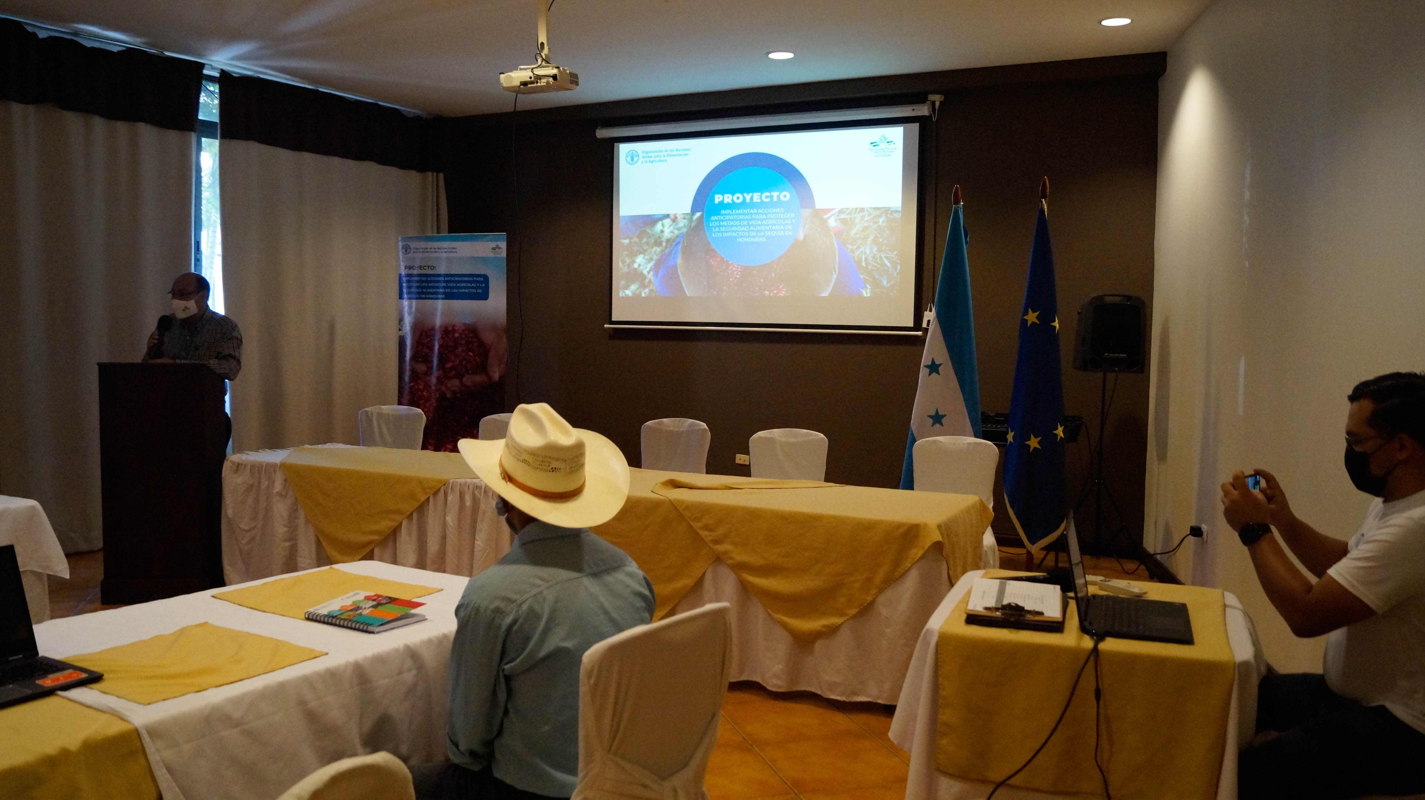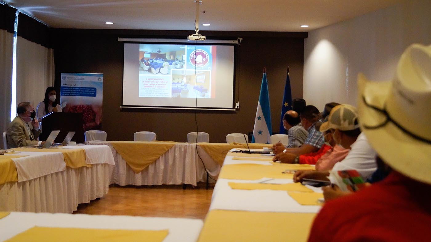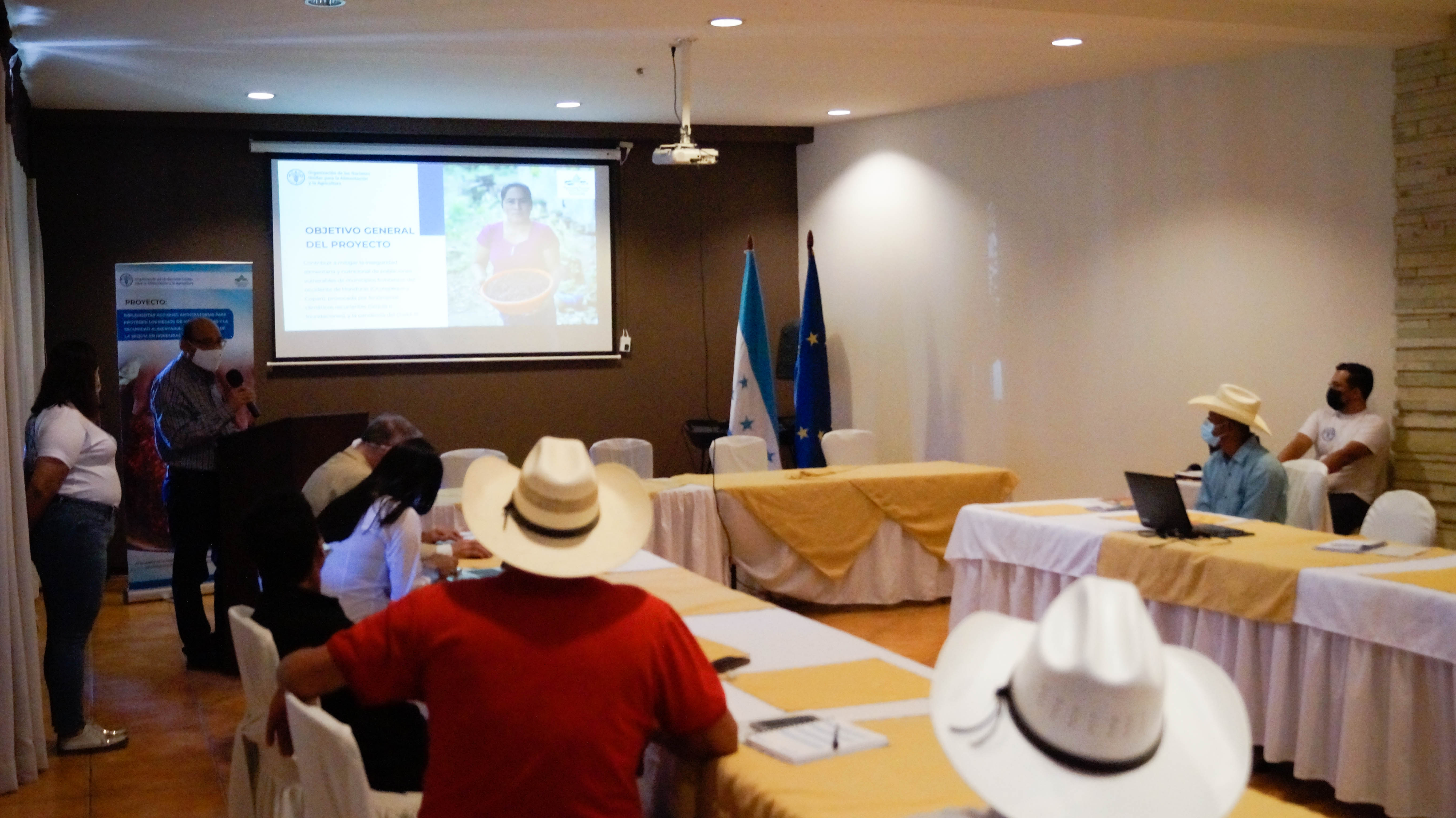Copán Ruinas, Copán, Honduras, 17 de marzo de 2022. La Mancomunidad Trinacional Fronteriza Río Lempa, presentó esta mañana, ante productores/as agrícolas, representantes de gobiernos locales y delegados de la FAO, los resultados del proyecto titulado: “Implementar acciones anticipatorias para proteger los medios de vida agrícolas y la seguridad alimentaria de los impactos de la sequía en Honduras. El proyecto fue financiado por la Organización de las Naciones Unidas para la Alimentación y la Agricultura, FOA – Sede Honduras.