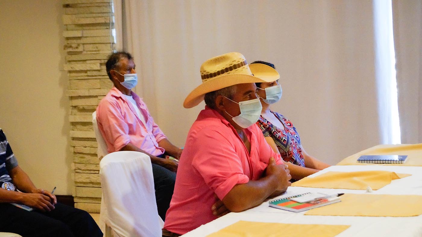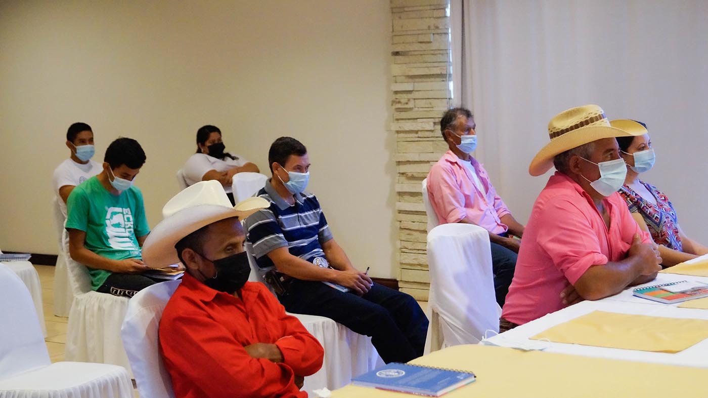 La mesa principal del acto de cierre del evento estuvo conformada por el Sr. Dennis Latimer, Representante de FAO Honduras, Clarixa Briceño, delegada de la FAO Honduras, para los temas de emergencia, Cesar Agustín, Alcalde Municipal de Sinuapa Ocotepeque, Honduras y Representante Legal de la Mancomunidad Trinacional; Héctor Aguirre, Gerente General de la Mancomunidad Trinacional y Luis Maldonado, Vice-alcalde del municipio de Sinuapa. El evento contó con la participación de 14 agricultores/as beneficiarios/as del proyecto, de los diferentes municipios participantes, así como con representantes de Gobiernos Locales y personal técnico de las instituciones que ejecutaron el proyecto.