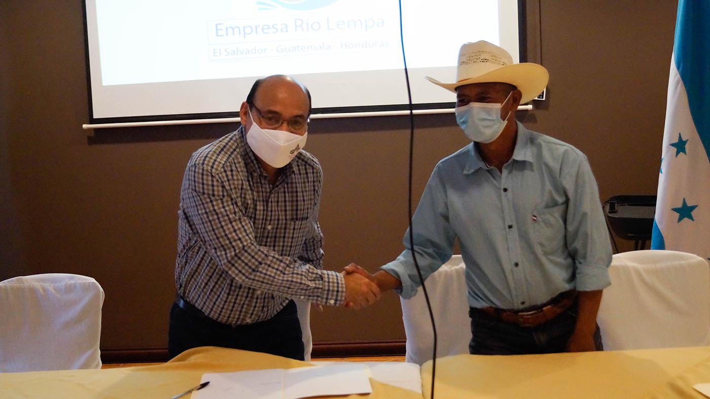 Durante el evento se realizó además la firma del contrato de compra – venta a futuro de granos básicos, entre las Empresa Rio Lempa S. de R.L. y 4 Asociaciones de Productores organizados en Cajas Rurales de Ahorro y Crédito, teniendo estimada una producción de 6,000 quintales de granos básicos.