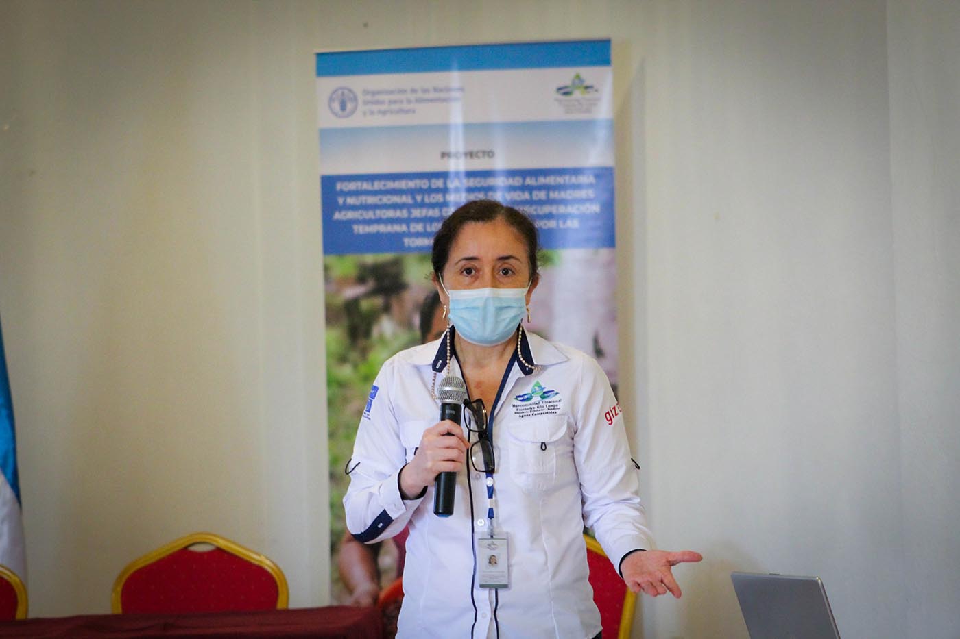 La presentación del proyecto durante la actividad, fue realizada, a cargo de la Sra. Dina Sagastume, Coordinadora de la Política Pública Local Transfronteriza Hambre Cero de la Mancomunidad Trinacional; detallando el territorio a intervenir, así como las acciones a realizar en el marco del proyecto, que se enfoca a fortalecer hogares vulnerables del territorio.
