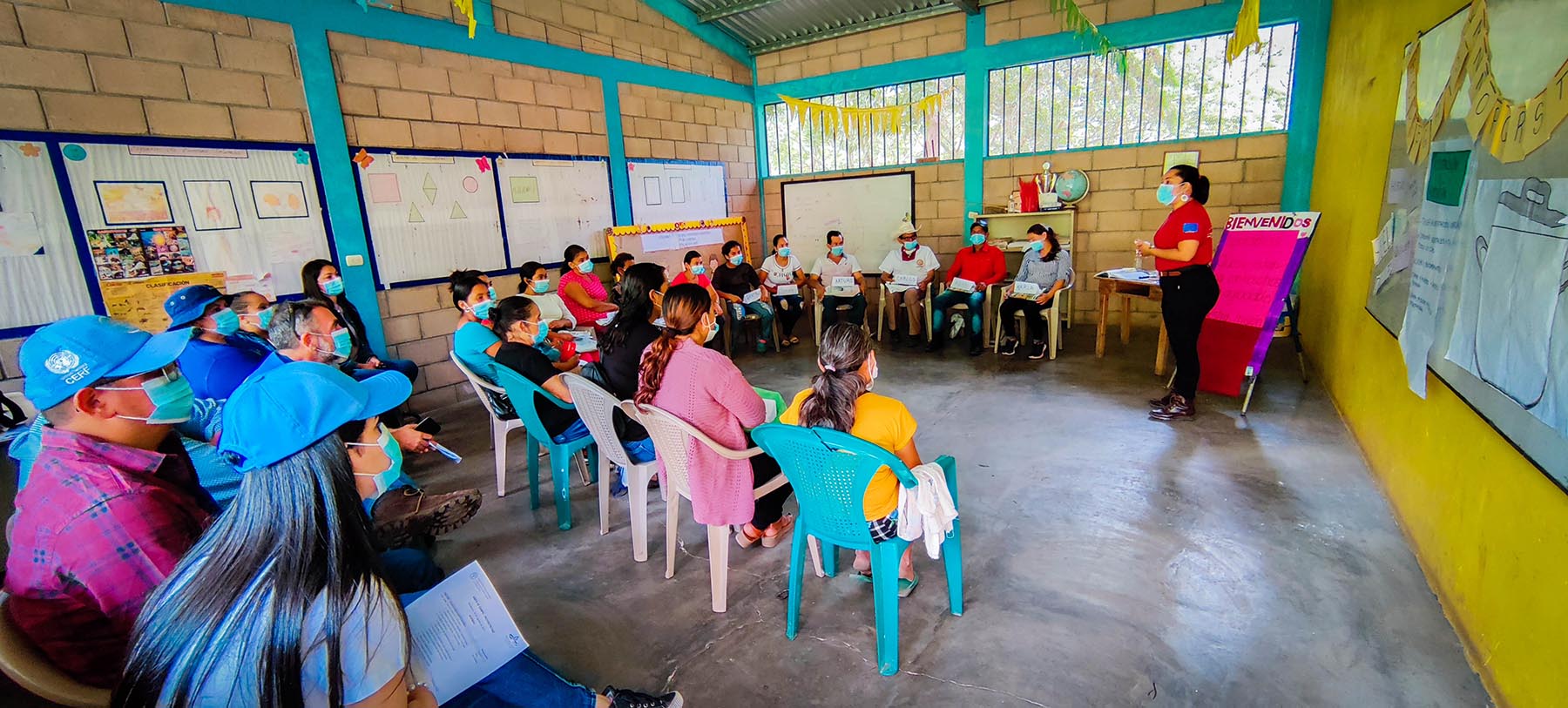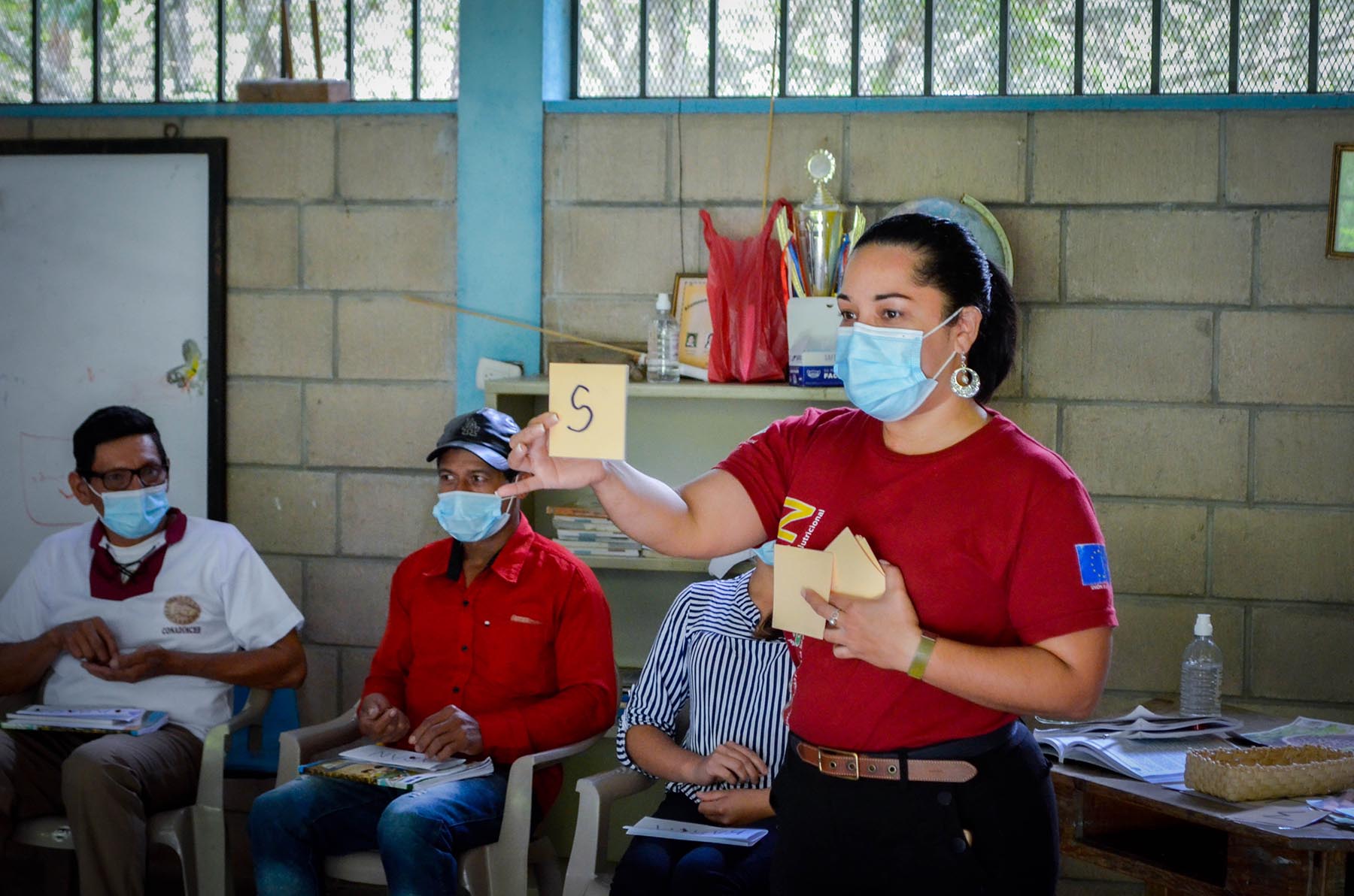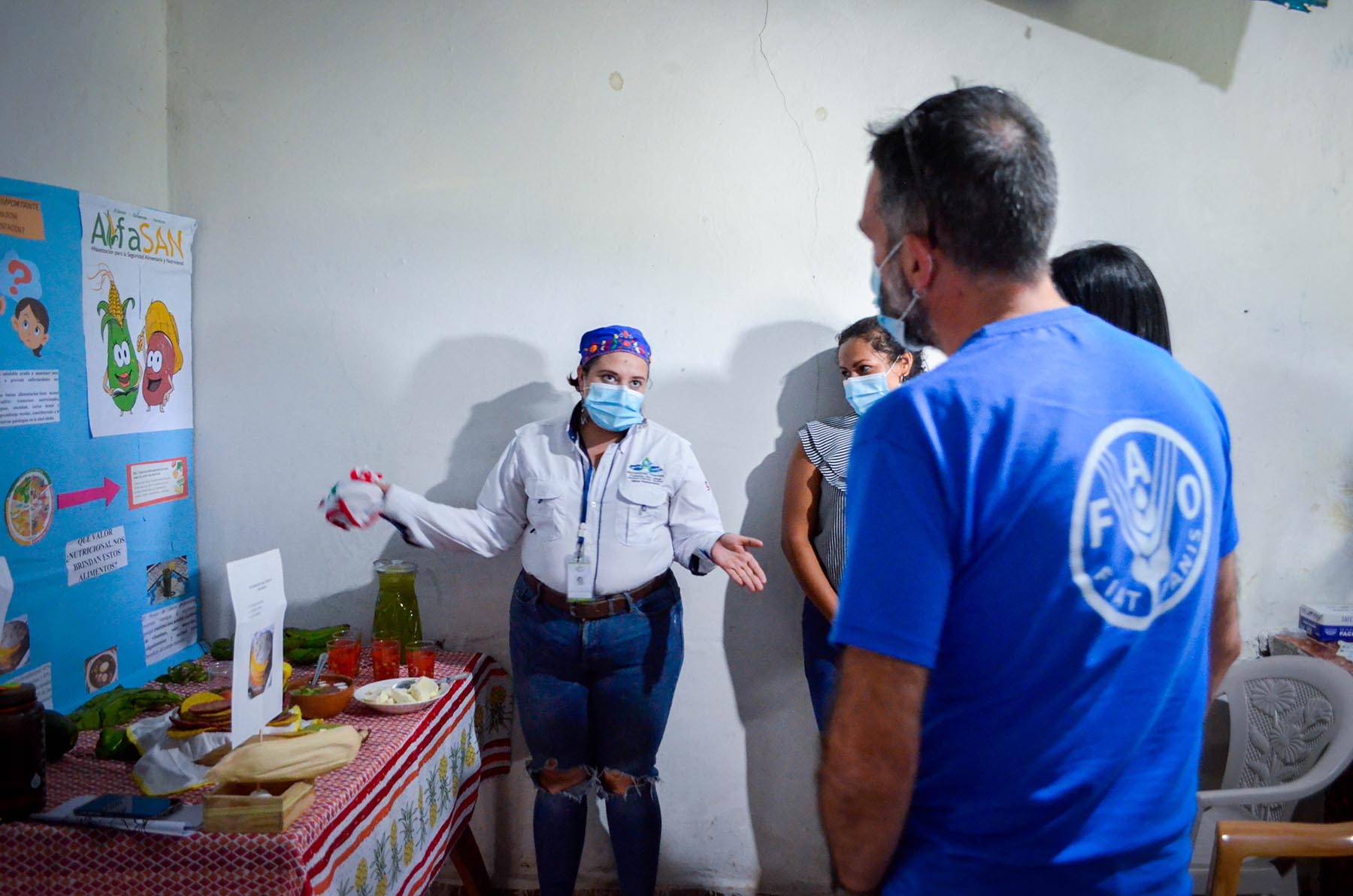 Durante la jornada, se realizó una clase demostrativa del Programa de Alfabetización para la Seguridad Alimentaria y Nutricional – AlfaSAN, la cual fue dirigida por la Licda. Scarleth Mejía, con once participantes de AlfaSAN; este programa, se implementa con el método aprender – haciendo, promovido por el pedagogo brasileiro Paulo Freire. De igual forma, la Licda. Fani Lara, de manera conjunta con lideresas y madres jefas de hogar, realizaron como práctica de Escuela de Campo para la SAN - ECASAN, la preparación de alimentos nutritivos, de las recetas aprendidas en el programa. Además, como una parte práctica más, del programa, se incentiva a participantes a realizar el cultivo y la producción de sus alimentos, mediante la implementación de huertos familiares, como medio para el fortalecimiento de la alimentación saludable dentro de los hogares de familias vulnerables; los avances del proyecto en esta actividad, fueron presentados a la delegación por los ingenieros Emilson Peña y Allan Hernández de manera conjunta con las participantes del programa en la comunidad.