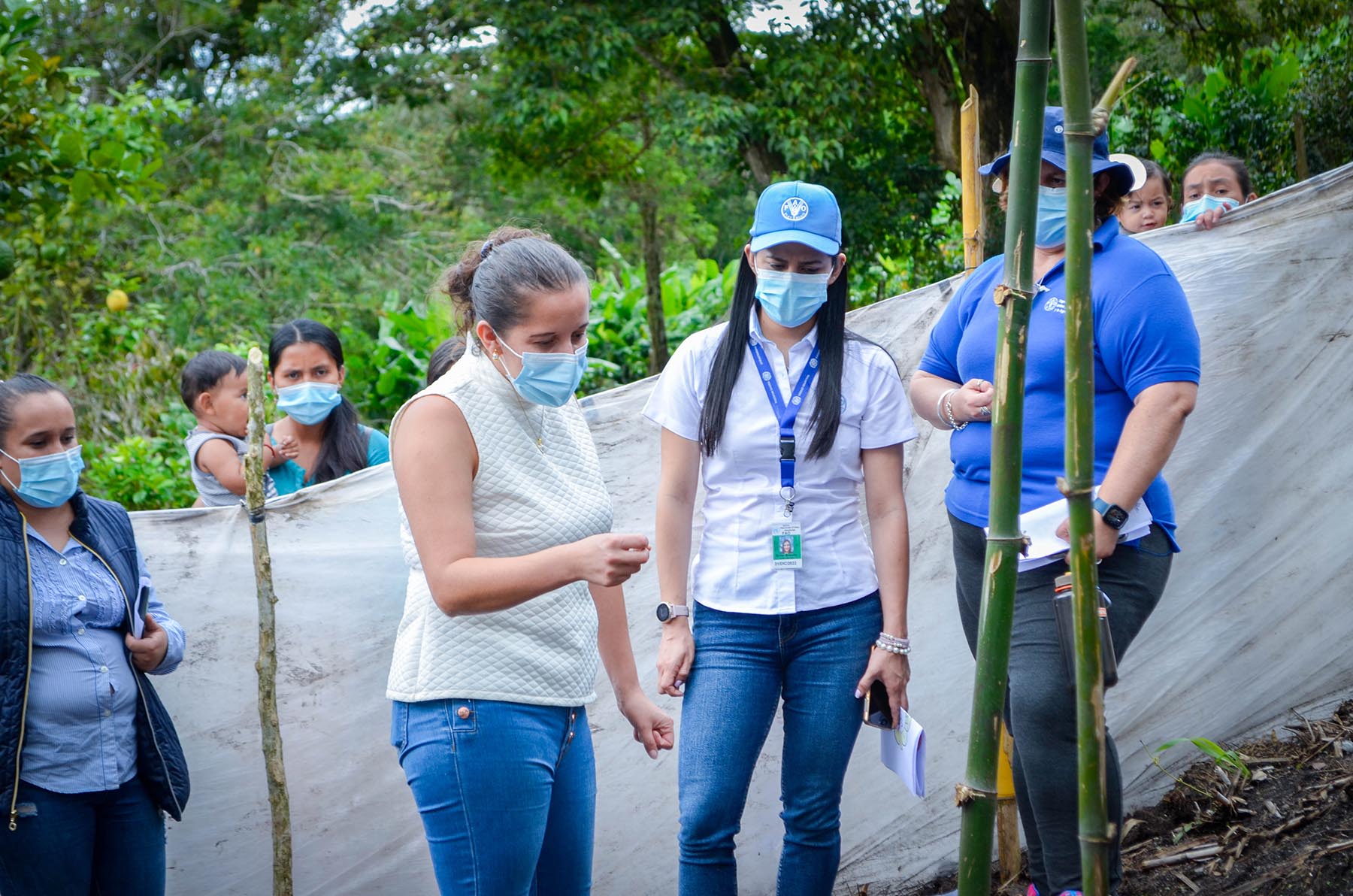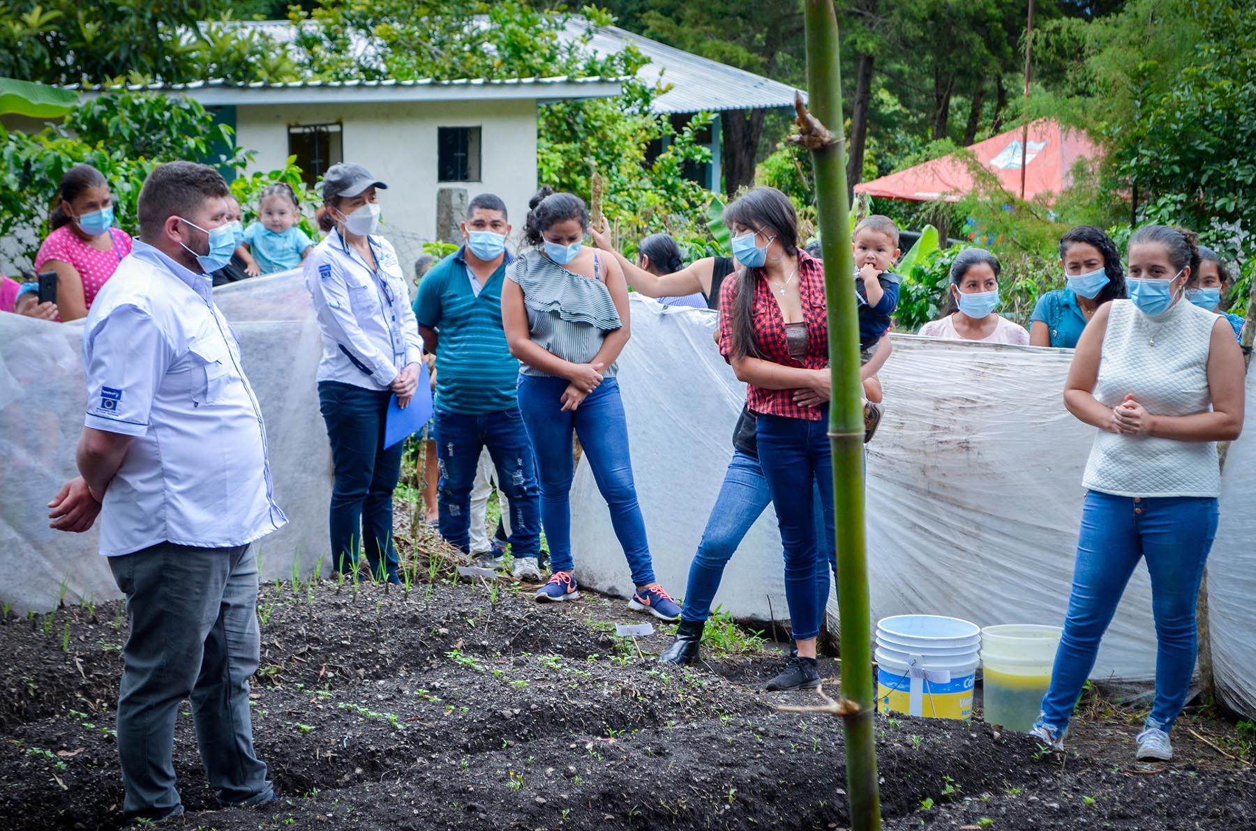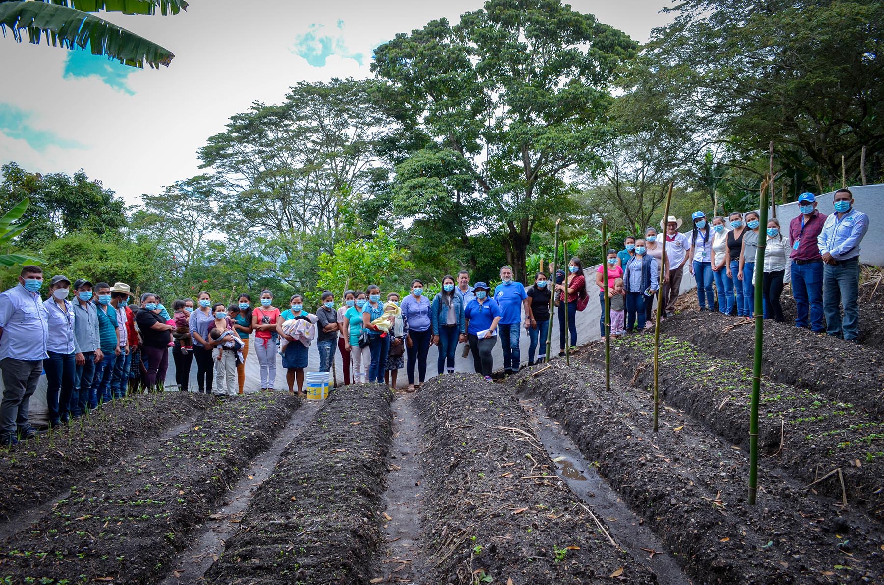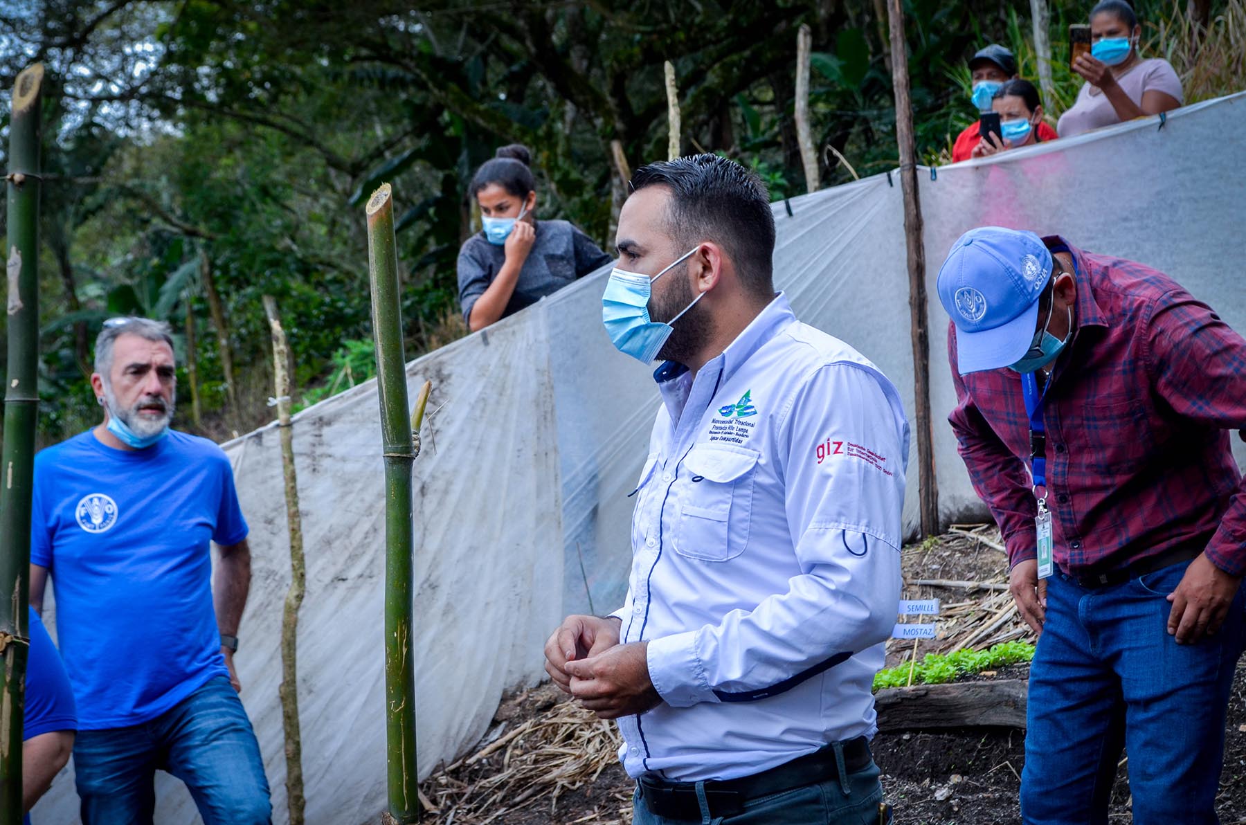 La comitiva integrada por los señores Xabier Garay, Punto Focal de Emergencia para Centro América, México y El Caribe; Alicia Medina, Oficial de programas FAO; Clarixa Briceño, Coordinadora Proyectos de Emergencia; Marlon Martínez, Supervisor de Sistemas Agrícolas y Sistemas de Riego de Proyectos de Emergencia y Marvin Villeda, Técnico Regional FAO, realizaron una visita a la Comunidad El Comedero, del Municipio de Sinuapa, Ocotepeque; acompañados de la Señora Mariela Peña, en representación del alcalde Municipal de Sinuapa, Marcela Peña, Coordinadora de la Oficina Municipal de la Mujer de Sinuapa; y personal técnico de la Mancomunidad Trinacional, pilares fundamentales para la ejecución de las actividades del proyecto en el territorio.