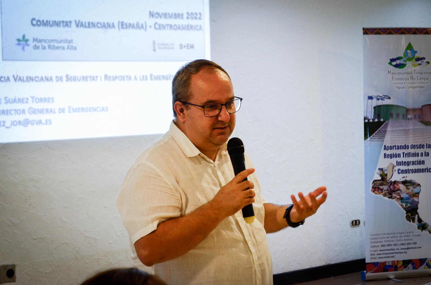 Jorge Suárez Torres, Subdirector General d'Emergències de la Comunitat de Valencia, fue el experto conferencista que desarrolló las temática, dando a conocer las experiencias de la Mancomunitat de la Ribera Alta, así como los instrumentos que existen a nivel global, regional y local que pueden apoyar el desarrollo de mecanismos para la atención de emergencias ante desastres.