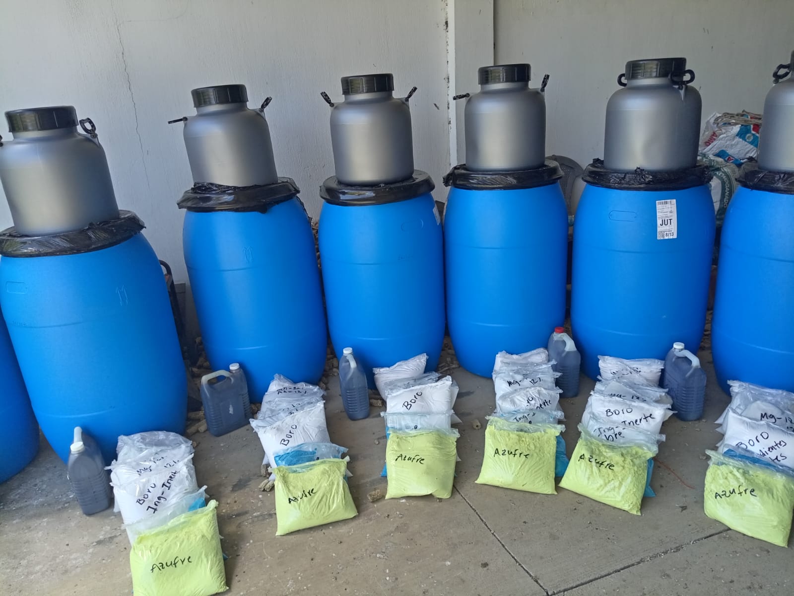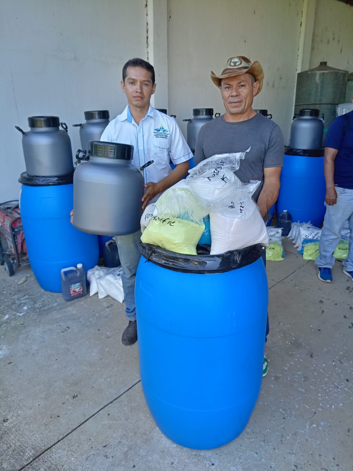La entrega fue una donación del proyecto ESCALAR-CATIE e incluyó la entrega de barriles, sales minerales y melaza para la preparación para fertilizantes al suelo y foliares, repelentes, fungicidas, entre otros.