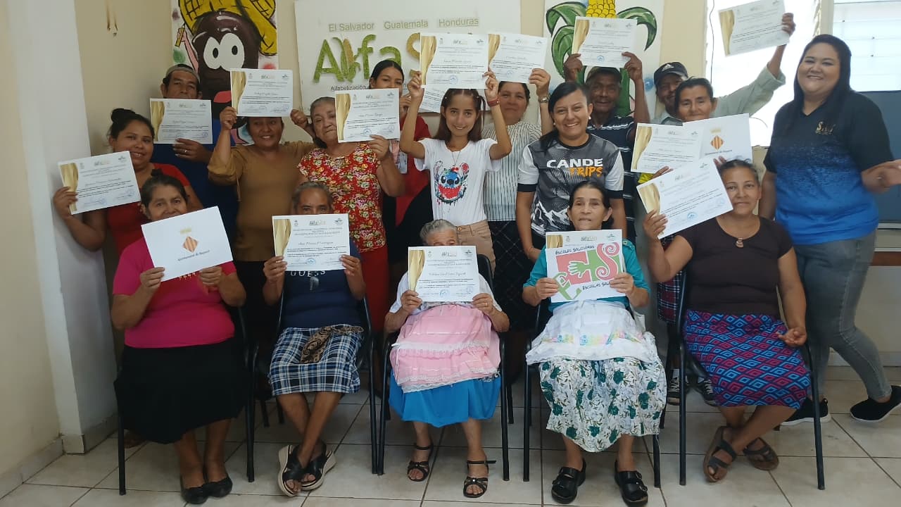 En las instalaciones de la Finca Escuela Trinacional ubicada en Candelaria de la Frontera, de Santa Ana Oeste, El Salvador, el día jueves 4 de diciembre se celebró la clausura del Programa de Alfabetización para la Seguridad Alimentaria y Nutricional, AlfaSAN. El proceso de alfabetización se desarrolló durante seis meses, logrando culminar 25 personas, de las cuales seis son hombres y 19 mujeres (76%); el grupo está comprendido entre los 17 y 79 años de edad.