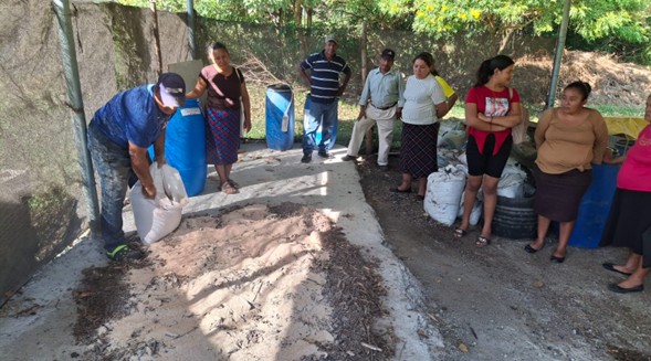 Durante el acto de clausura se llevó a cabo la última jornada del proceso formativo orientada a la elaboración de bioinsumos, asimismo, se procedió a la entrega de plantines, abono lombrifoliar y semillas, con el fin de apoyar el fortalecimiento de huertos caseros urbanos para la producción de hortalizas. Posteriormente se entregaron los diplomas de reconocimiento por parte de los representantes de la municipalidad Licenciada Iris Recinos y Dina Ramírez; durante la entrega, expresaron palabras de felicitación y agradecimiento por el compromiso demostrado.