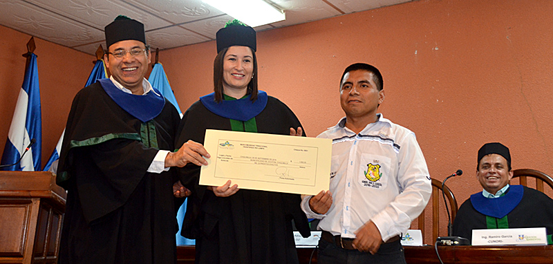 Al concluir la graduación, la Mancomunidad Trinacional Fronteriza Río Lempa, MTFRL, y el Centro Agronómico Tropical de Investigación y Enseñanza, CATIE, entregaron los US$ 1,500.00 al proyecto ganador presentado por Petronilo Pérez López, quien forestará los bosques y cuencas del municipio de Jocotán, Chiquimula, Guatemala, con el apoyo de la alcaldía municipal.