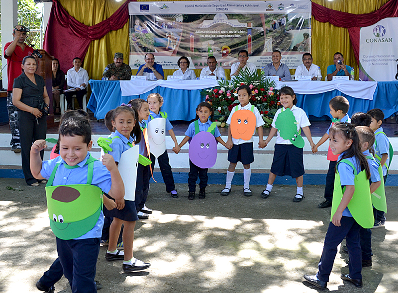 El acto fue presidido por el alcalde municipal, Carlos Álvarez, y otros titulares del gobierno como el Viceministro de Agricultura y Ganadería, Hugo Flores; la Diputada de la Asamblea Legislativa, Audelia López; y la Directora Ejecutiva de la Comisión Nacional de Seguridad Alimentaria y Nutricional, CONASAN, Daysi de Márquez.