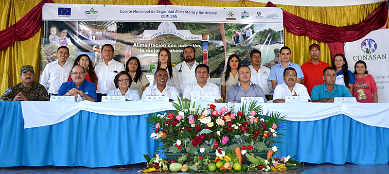 La COMUSAN esta integrada por: El representante del Alcalde municipal, representante del Ministerio de Salud, representante del Ministerio de Educación, representante del Ministerio de Agricultura y Ganadería, representante del sistema Judicial, de la Policía, Coordinadora de la UMSAN, representantes de iglesias, representantes de las Organizaciones No Gubernamentales (ONG) en el municipio como la Trinacional, demás organizaciones sociales de San Fernando, quienes fueron juramentado al terminal el evento.