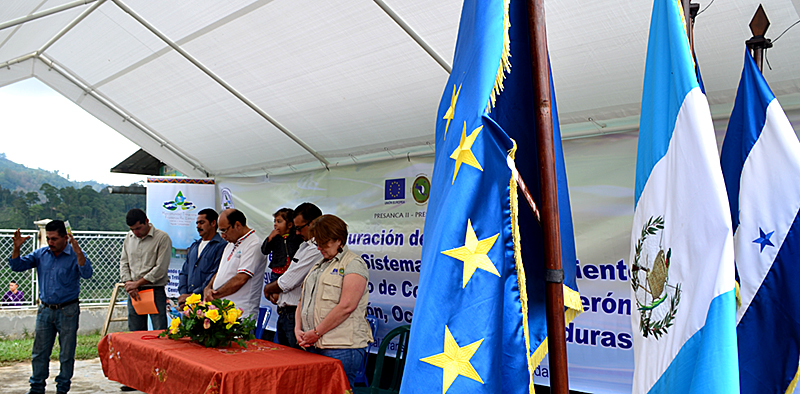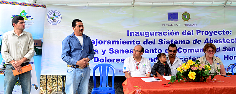 Dolores Merendón, Ocotepeque, Honduras, 08 Noviembre 2016. Una necesidad histórica de la Aldea San Jerónimo fue resuelta, “gracias por resolvernos el problema del agua”, dijo el Alcalde de Dolores Merendón, Adelmo Chacón, al inaugurar este lunes 07, el sistema de abastecimiento de Agua Potable por un monto deL. 1 millón 76 mil Lempiras (US$52,100.00), proveído por la Mancomunidad Trinacional Fronteriza Río Lempa con fondos de PRESANCA II.