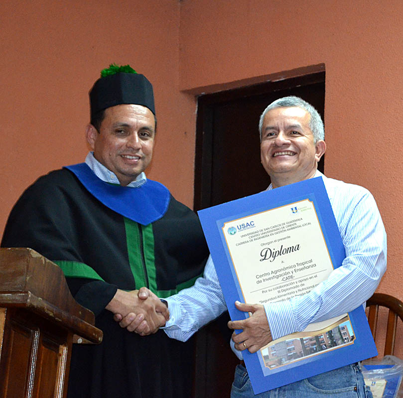 Los 25 nuevos técnicos en Seguridad Alimentaria y Nutricional, SAN, vestían sus mejores galas en las instalaciones del Centro Universitario de Oriente de la Universidad de San Carlos, CUNORI-SC; “en este tercer diplomado tenemos técnicos de los tres países, eso es bueno porque estamos formando nuevos colaboradores que egresan con la misma calidad académica de nuestras carreras oficiales”, expresa Ramiro García, Coordinador de la Carrera de Ingeniería en Gestión Ambiental, del CUNORI-SC.