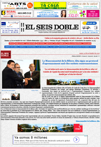 La firma de hermanamiento cubrió las principales portadas de periódicos de Valencia, momentos en los que se conmemora el XX aniversario de la Mancomunidad de la Ribera Alta, Valencia, para la cual desarrollo la “Conferencia Internacional de Mancomunidades” realizada del 15 al 17 de noviembre 2016, con el objetivo de dar a conocer las experiencias y de asociacionismo intermunicipal, como fórmula para la prestación de servicios en diferentes países de Europa, América Latina y África.
