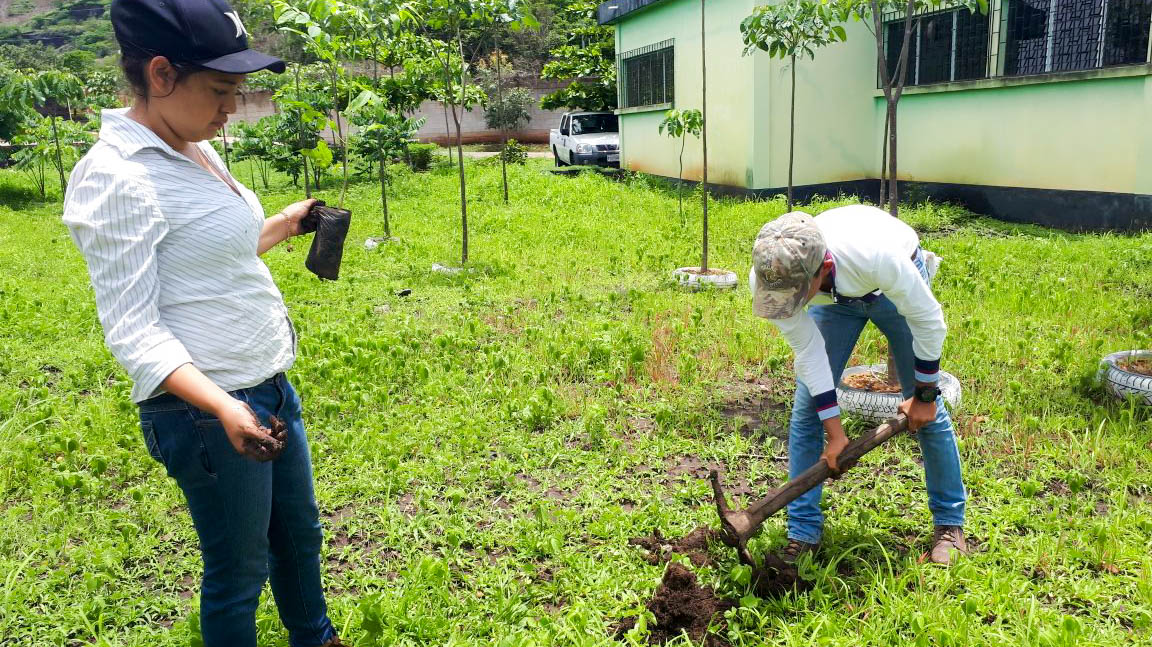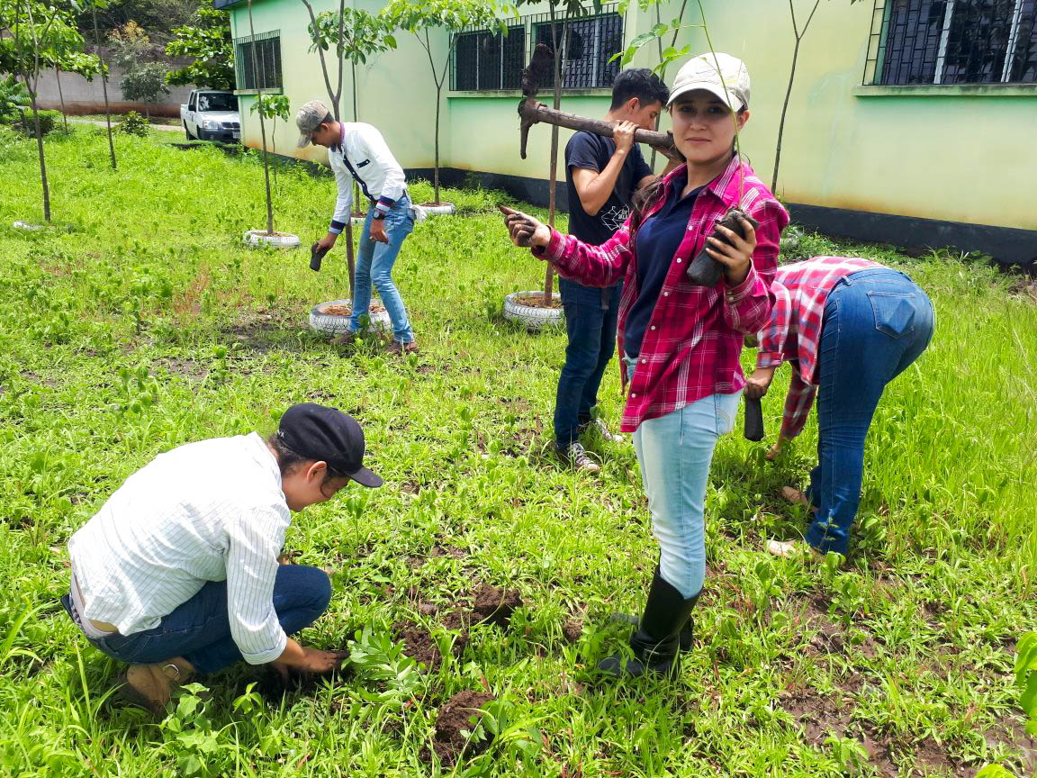 Asunción Mita, Jutiapa, Guatemala, 08 de Junio de 2018. Estudiantes de la Facultad de Humanidades de la Universidad San Carlos de Guatemala sede Santa Catarina Mita y Servidores Cívicos de la SAT-Guatemala; realizan campaña de reforestación en terreno de la Planta de Manejo Integral de Residuos Sólidos, administrada por la Mancomunidad Trinacional Fronteriza Rio Lempa.