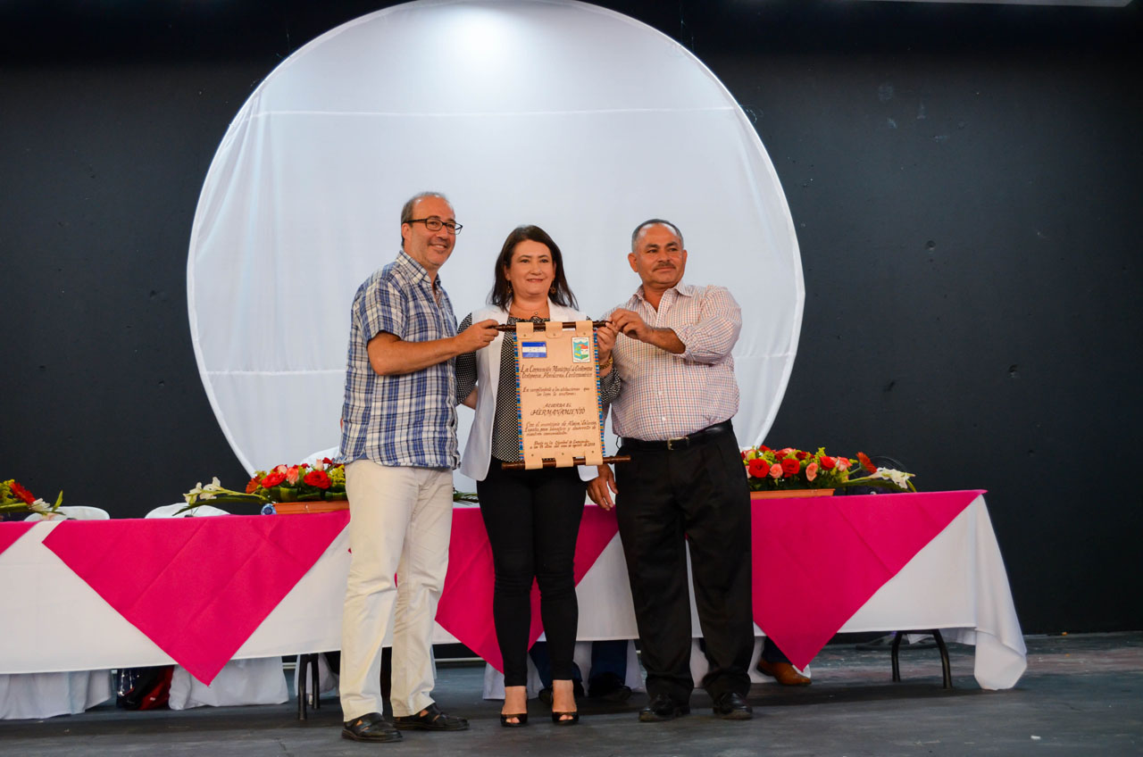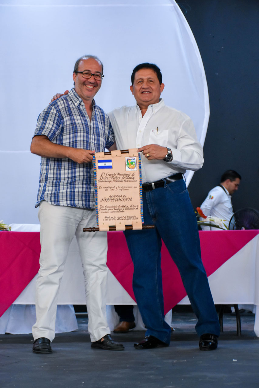 Los jefes ediles de los municipios del Trifinio, entregaron además pergaminos de hermanamiento al alcalde de Alzira, con los acuerdos municipales respectivos, como recuerdo de este importante evento.