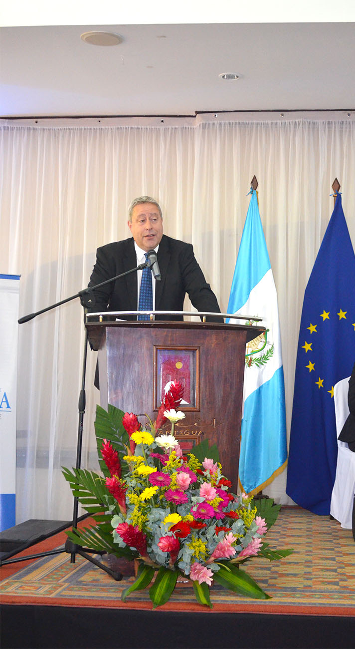 La inauguración del evento contó con la presencia de Beatrice Bussi, Jefa Adjunta de Cooperación de la Delegación de la Unión Europea en Guatemala; Anja María Dahl, Directora de GIZ Guatemala; Michael Grewe, Jefe de Cooperación de la Embajada de Alemania en Guatemala; Eric Sanson, Primer Consejero de la Embajada de Francia en Guatemala; y Alfonso Alonso Vargas, Ministro de Medio Ambiente y Recursos Naturales de Guatemala.