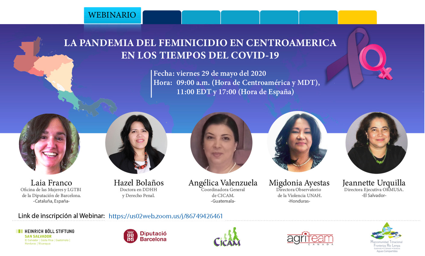 La Mancomunidad Trinacional Fronteriza Río Lempa invita a participar del webinario en el que abordaremos el tema "La Pandemia del Feminicidio en Centroamérica, en los tiempos del Covid-19".