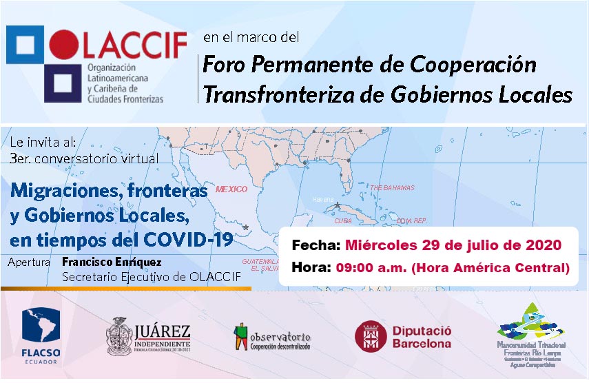 La Mancomunidad Trinacional Fronteriza Río Lempa invita a participar del Tercer Conversatorio Virtual "Migraciones, fronteras y Gobiernos Locales, en tiempos de COVID-19" en el marco del Foro Permanente de Cooperación Transfronteriza de Gobierno Locales.
