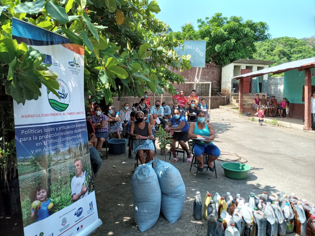 Por medio de esta iniciativa se ha realizado la entrega, a estos 439 agricultores y agricultoras, de insumos agropecuarios, entre los que se encuentran: i) Árboles frutales y forestales; ii) material vegetativo para establecer barreras vivas (zacate vetiver y piña); iii) Sales minerales para realizar insumos agroecológicos; iv) Barriles para elaborar insumos agroecológicos, para el control de plagas y para mejorar la nutrición de suelos y plantas; v) Herramientas; vi) Insumos para la construcción de macro túneles; entre otros. En total, se ha invertido un aproximado de Cien Mil, Dólares (US$ 100,000.00), financiados tanto por el Programa EURICLOMA+ como por la contrapartida aportada por los gobiernos locales participantes.