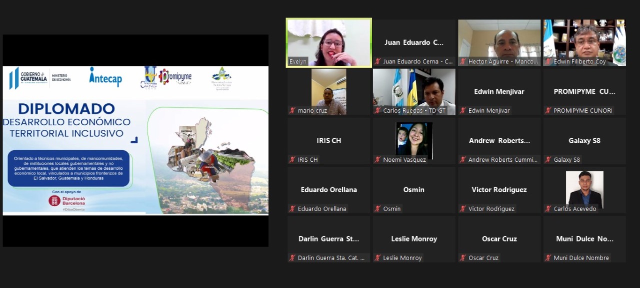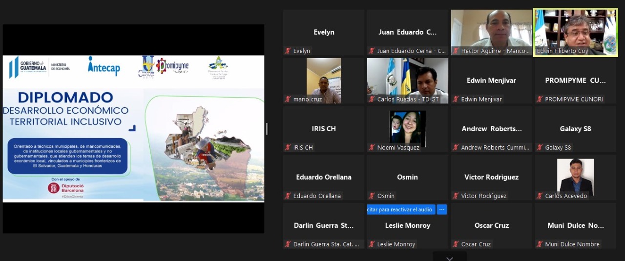 Este diplomado se realiza en el contexto de la Política Pública Local para el Desarrollo Económico Territorial Inclusivo, en regiones fronterizas de Centro América, está siendo apoyado por la Diputación de Barcelona y tiene como objetivo “Contribuir con el fortalecimiento de las capacidades técnicas del recurso humano local, para ejercer liderazgo frente a la problemática del estancamiento económico, el desempleo y la pobreza sobre todo en poblaciones vulnerable”. 50 técnicos y técnicas representantes de Municipalidades, Mancomunidades y Organizaciones de la Sociedad Civil, de El Salvador, Guatemala y Honduras, han sido seleccionados para participar de este proceso de formación.
