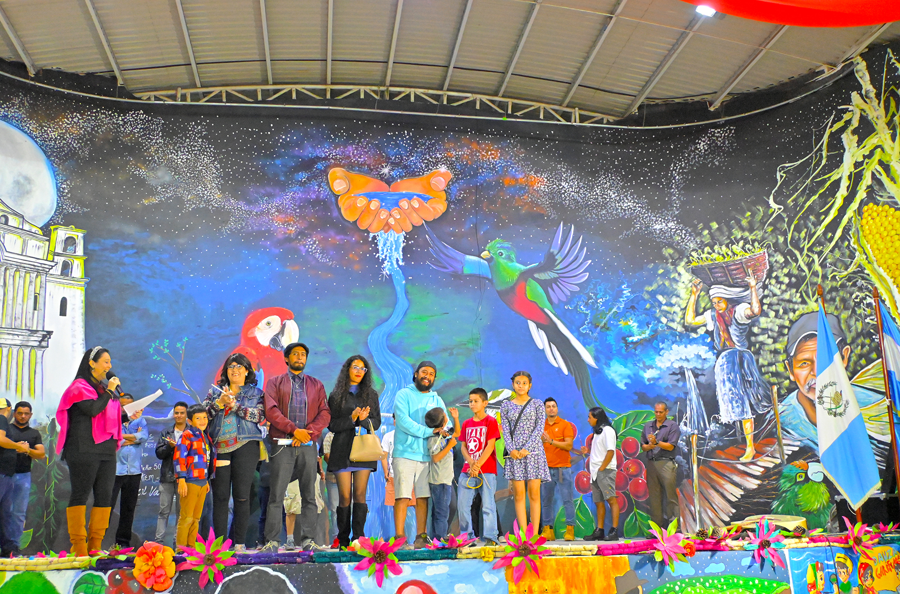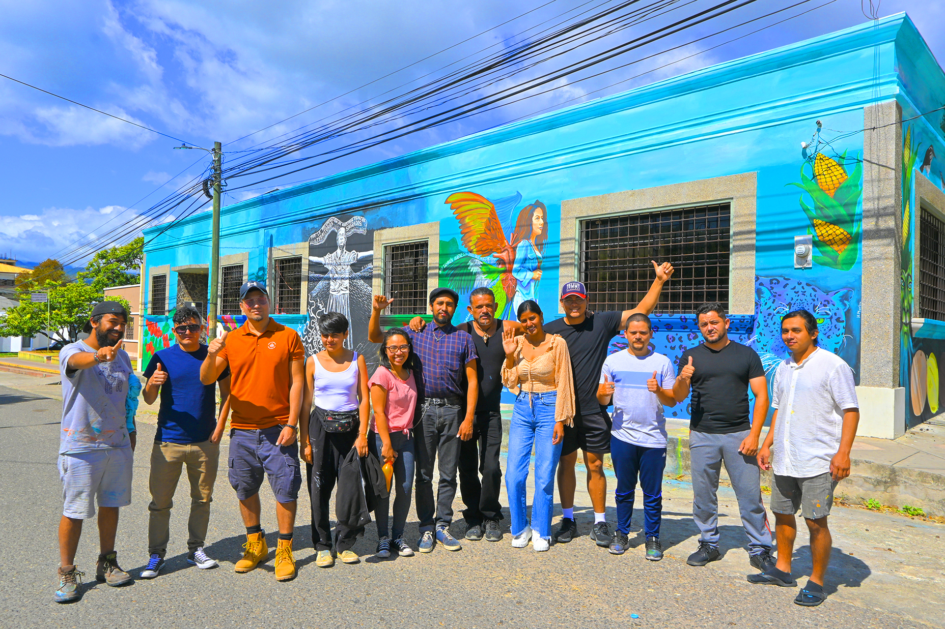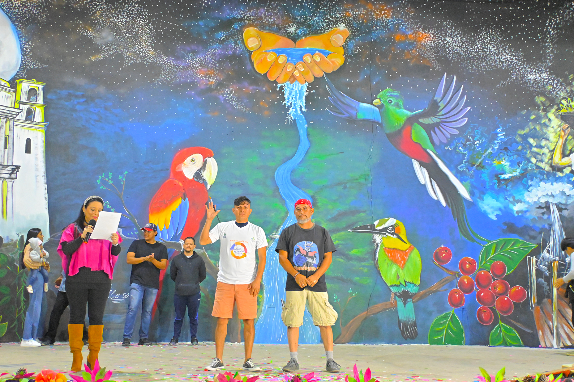 Los artistas fueron presentados uno a uno con la imagen elaborada en los diferentes espacios públicos, junto a pintores locales, estudiantes, miembros de comunidades y niños que participaron en la elaboración de los murales, a quienes se les entregaron diplomas de participación.