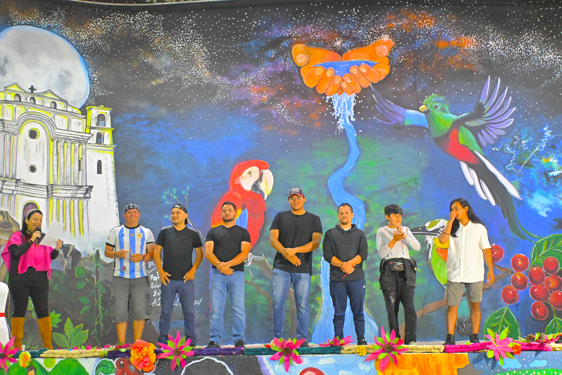 Los artistas de los cuatro países son: Karla Elizabeth González (Karla Gonzo), Griselda Azucena Miranda Reynado (Gris Reynado), Antonio Rafael Bolaños y Joe Cruz Pérez de El Salvador; de Guatemala: Selvin Ariel Pérez Hernández, Bryan Rahí Felipe Pacheco y Elvis Pérez Hernández; por México asisten: Kevin Edwin Reyes Arellano y Juan Carlos Hernández Eleno, y de Honduras participan: Oscar Soto Ventura, Alejandro David Espinoza Salinas y Javier Espinal, quien coordinó el equipo.