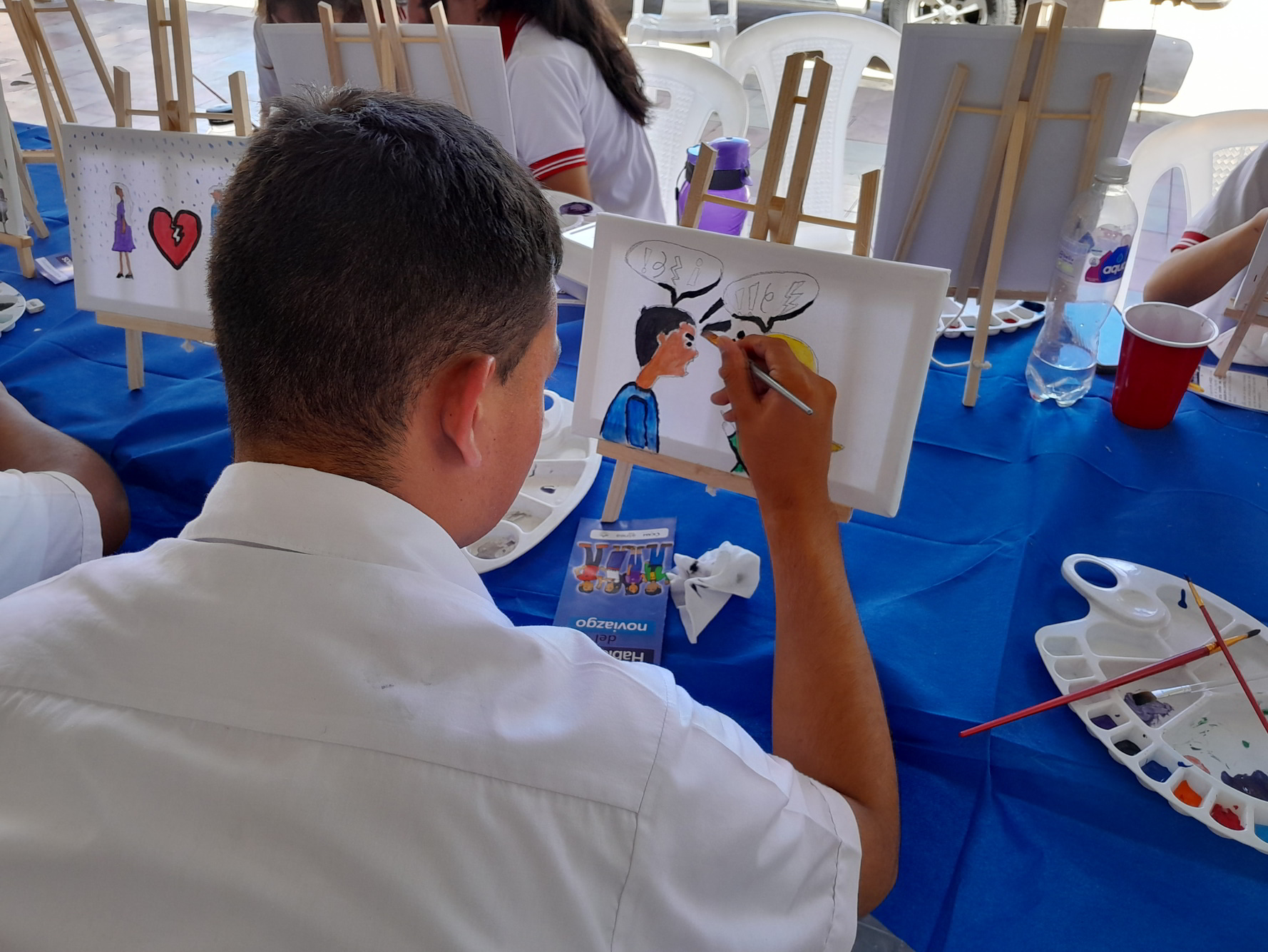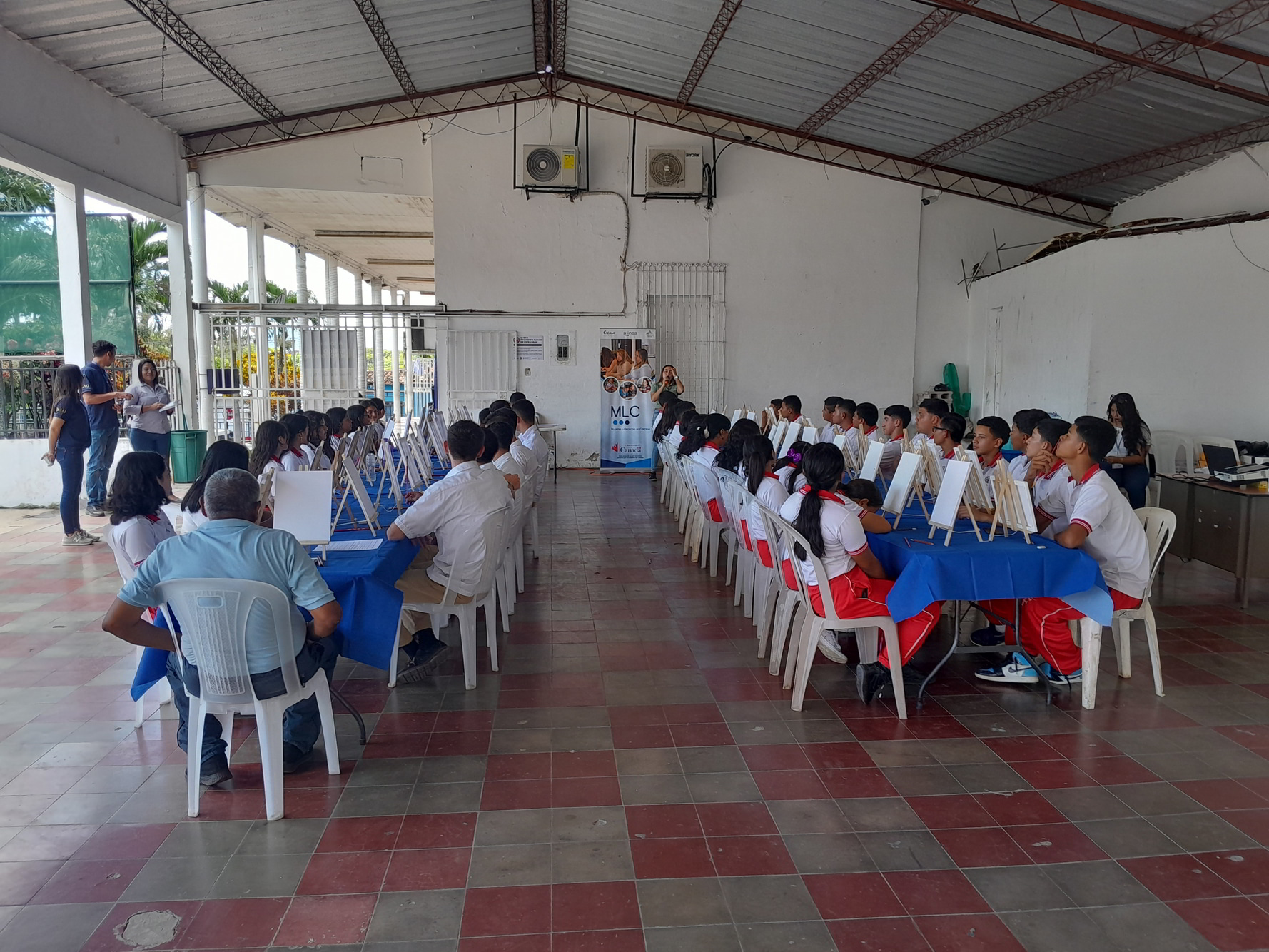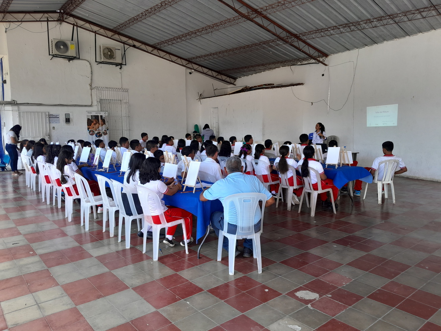 El miércoles, 18 de septiembre del presente año, en el Distrito de Candelaria de la Frontera, departamento de Santa Ana Oeste, República de El Salvador, en coordinación con la alcaldía Municipal de Santa Ana Oeste, a través de la Unidad de la Mujer del Distrito de Candelaria de la Frontera se desarrolló el Taller de Pintura como parte de la Campaña, en el cual se contó con la participación de 45 estudiantes y un profesor, quienes durante el proceso fueron sensibilizados mediante una charla con el tema: “Violencia Sexual” brindada por una psicóloga del proyecto Mujeres Liderando el Cambio, contando con la participación y opinión del público presente, además facilitándoles a los presentes trifoliares para ampliar la información de la charla brindada. Estos conocimientos se cimentaron con la siguiente actividad; el Taller de Pintura, en donde se brindó una inducción a los integrantes, posteriormente dibujaron y colorearon escenarios en donde se puede apreciar formas de violencias, al mismo tiempo otros plasmaron escenarios libres de violencia. Estos contrastes invitaron a que reflexionen sobre la normalización que las comunidades han hecho sobre los distintos tipos de violencia que se presentan en el día a día contra las mujeres, juventud y población indígena para así motivar a los participantes a generar un cambio positivo en sus comunidades. Al final a cada integrante se le extendió por su participación un diploma.