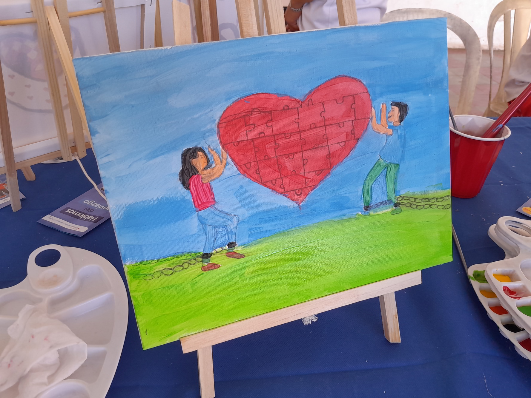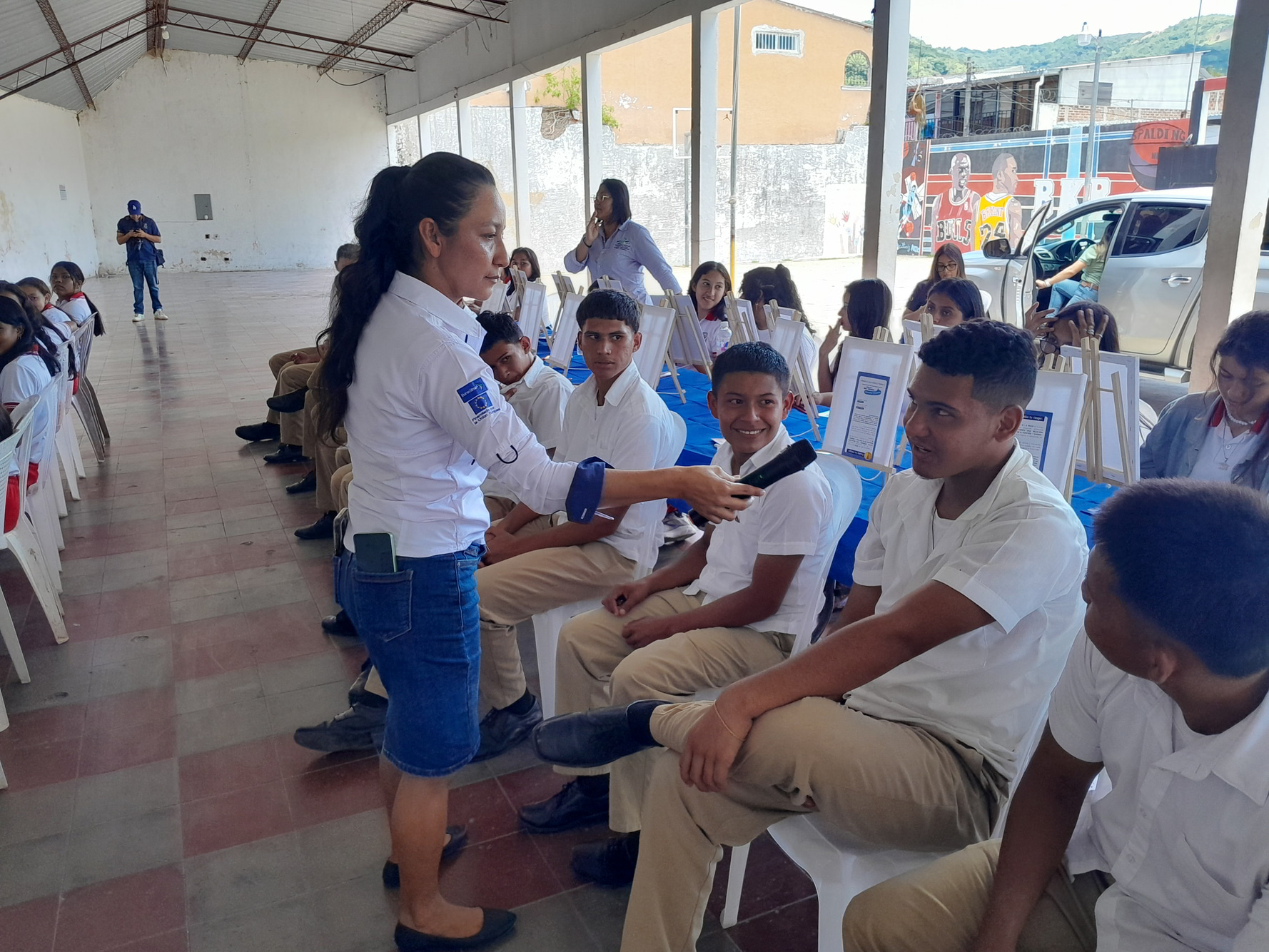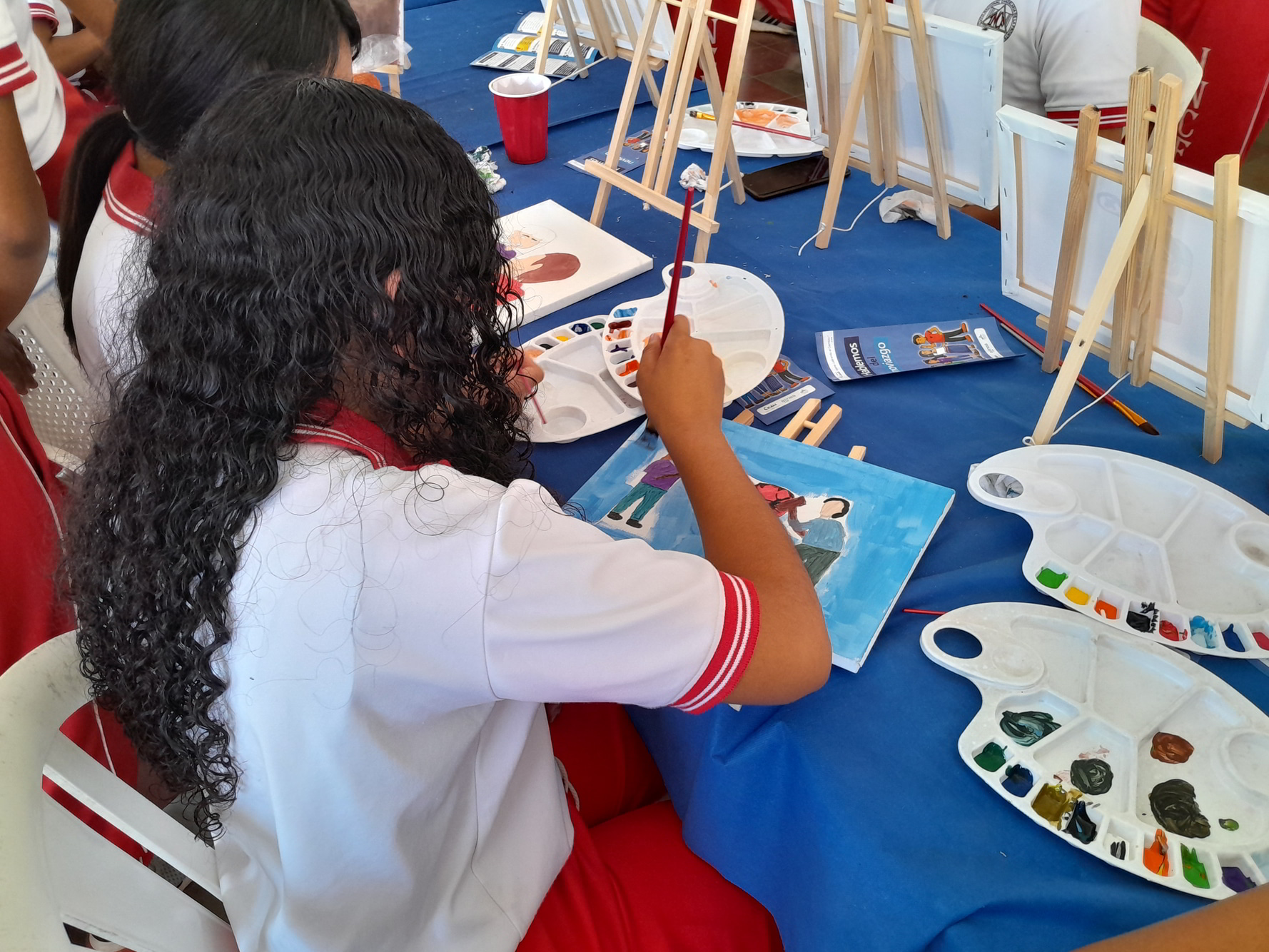 El miércoles, 18 de septiembre del presente año, en el Distrito de Candelaria de la Frontera, departamento de Santa Ana Oeste, República de El Salvador, en coordinación con la alcaldía Municipal de Santa Ana Oeste, a través de la Unidad de la Mujer del Distrito de Candelaria de la Frontera se desarrolló el Taller de Pintura como parte de la Campaña, en el cual se contó con la participación de 45 estudiantes y un profesor, quienes durante el proceso fueron sensibilizados mediante una charla con el tema: “Violencia Sexual” brindada por una psicóloga del proyecto Mujeres Liderando el Cambio, contando con la participación y opinión del público presente, además facilitándoles a los presentes trifoliares para ampliar la información de la charla brindada. Estos conocimientos se cimentaron con la siguiente actividad; el Taller de Pintura, en donde se brindó una inducción a los integrantes, posteriormente dibujaron y colorearon escenarios en donde se puede apreciar formas de violencias, al mismo tiempo otros plasmaron escenarios libres de violencia. Estos contrastes invitaron a que reflexionen sobre la normalización que las comunidades han hecho sobre los distintos tipos de violencia que se presentan en el día a día contra las mujeres, juventud y población indígena para así motivar a los participantes a generar un cambio positivo en sus comunidades. Al final a cada integrante se le extendió por su participación un diploma.